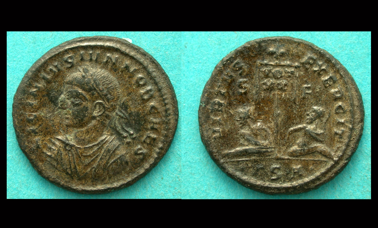 Seller's Note/ Licinius II, was son of Licinius, grandson of Constantius I, and half-nephew of Constantine, born to Flavia Julia Constantia in July or August 315. At the time this coin was struck he was only a few years old! So, why a 20 year vow? Constantine I struck similar issues to celebrate his older sons Crispus and Constantine II, hence Licinius I followed suit and did the same for his only son.