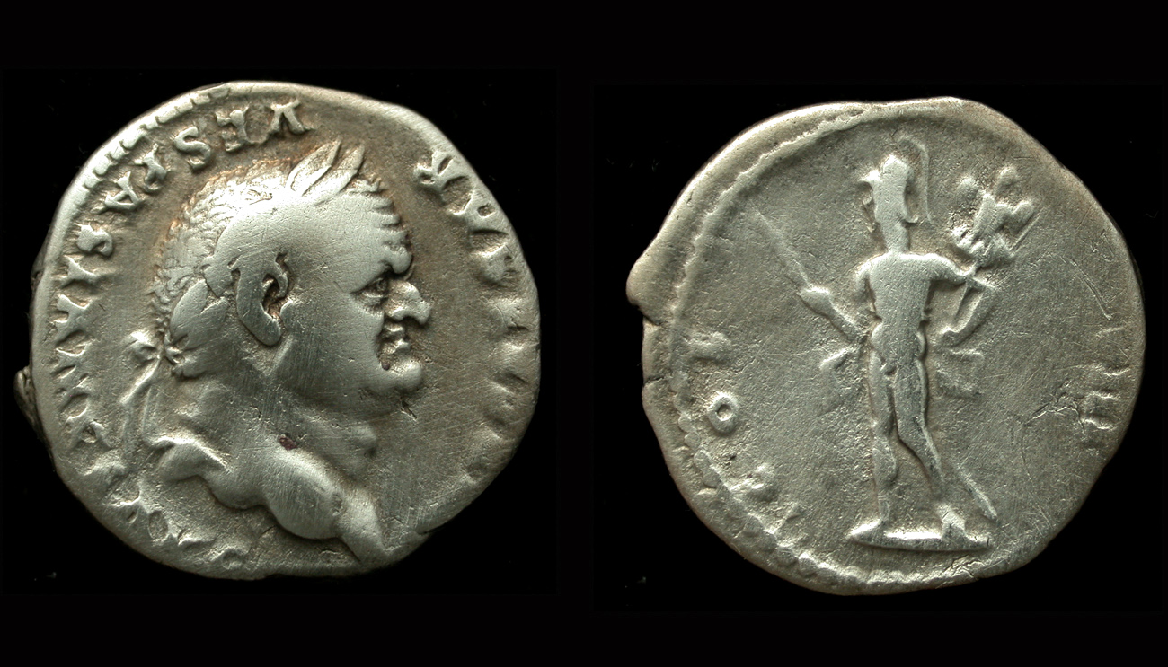 Obv/ IMP CAESAR VESPASIANVS AVG (legend counterclockwise); laureate head right.
