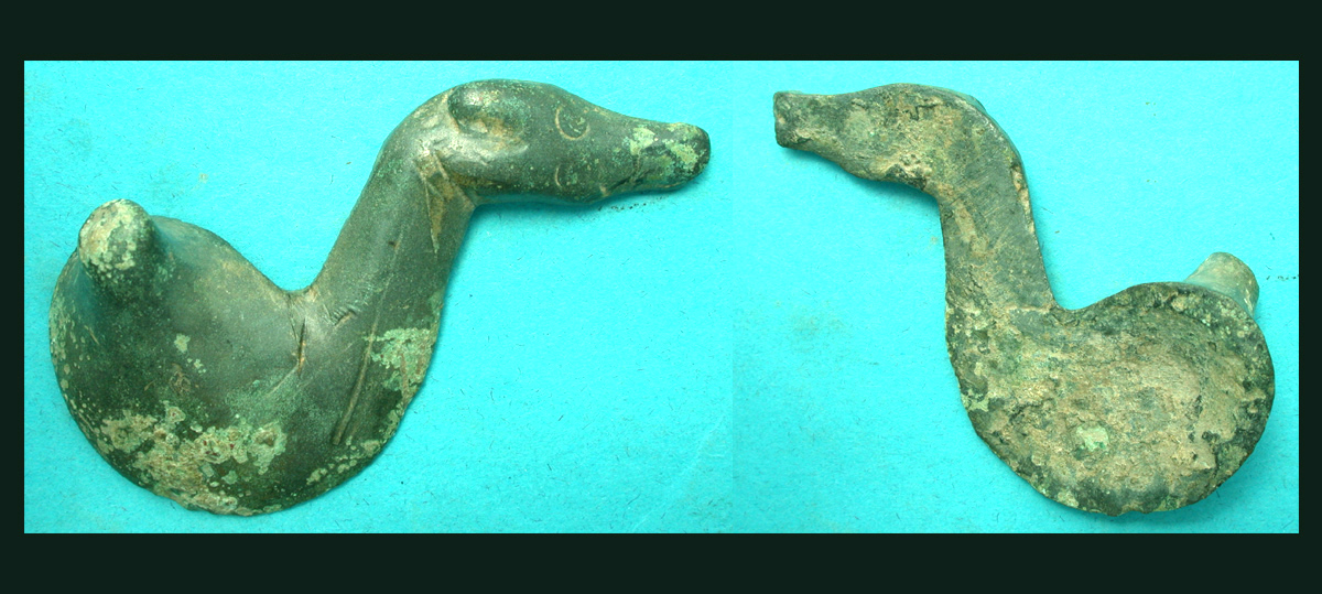 Seller's Note/ Ground-found in the environs of an ancient Celtic settlement south of the Drava river, this charming sea lion exhibits signs of solder on the reverse and was certainly affixed as a decoration to a copper alloy vessel of one sort or another. Most likely it was a trade item from the Black Sea.