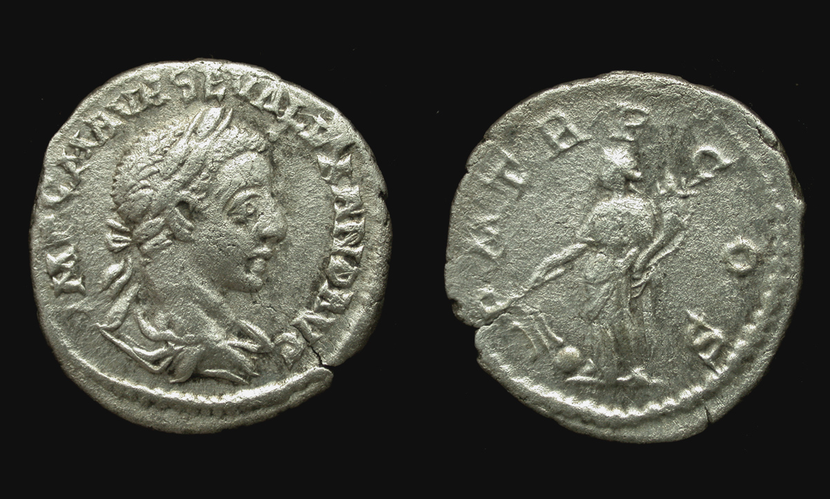 Obv/ IMP C M AVR SEV ALEXAND AVG; laureate, draped bust right
