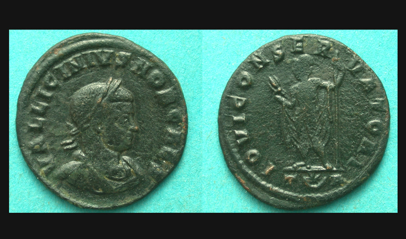 Obv/ VAL LICINIVS IVN NOB CAES; laur., dr., and cuir. bust r.