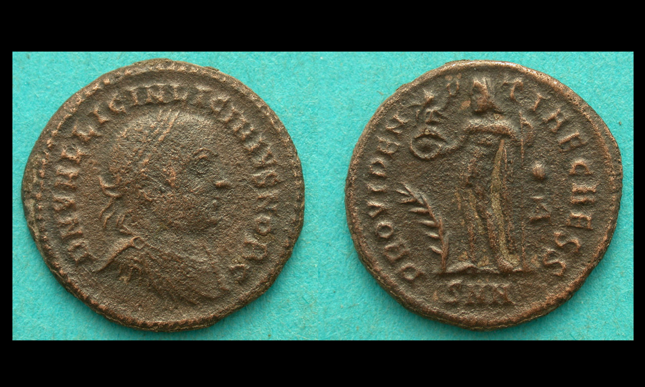 Obv/ DN VAL LICIN LICINIVS IVN NOB C; laur., dr., and cuir. bust r.