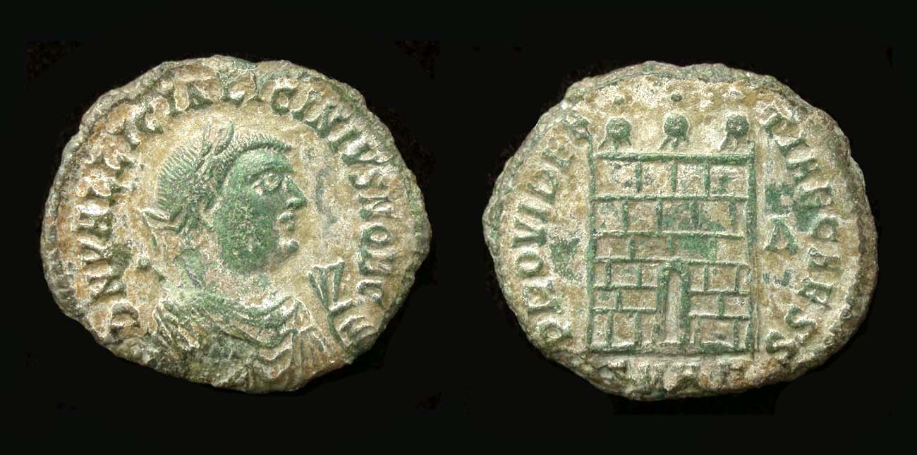Obv/ DN VAL LICIN LICINIVS NOB C; laurelate bust right wearing Imperial mantle, holding mappa, globe and scepter.