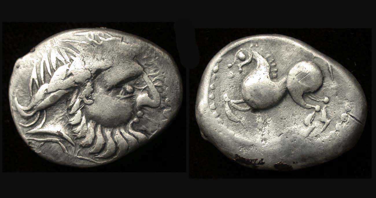 Beginning about 250 BC, the Danubian Celtic tribes began to imitate the images on the coins of King Philip II and Alexander the Great (Zeus obverse and Horse reverse) but in their own particular style.