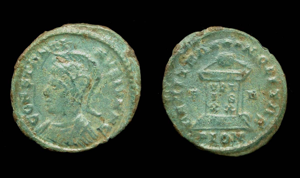 Obv/ CONSTANT-INVS IVN N C; helmeted and cuirassed bust left.