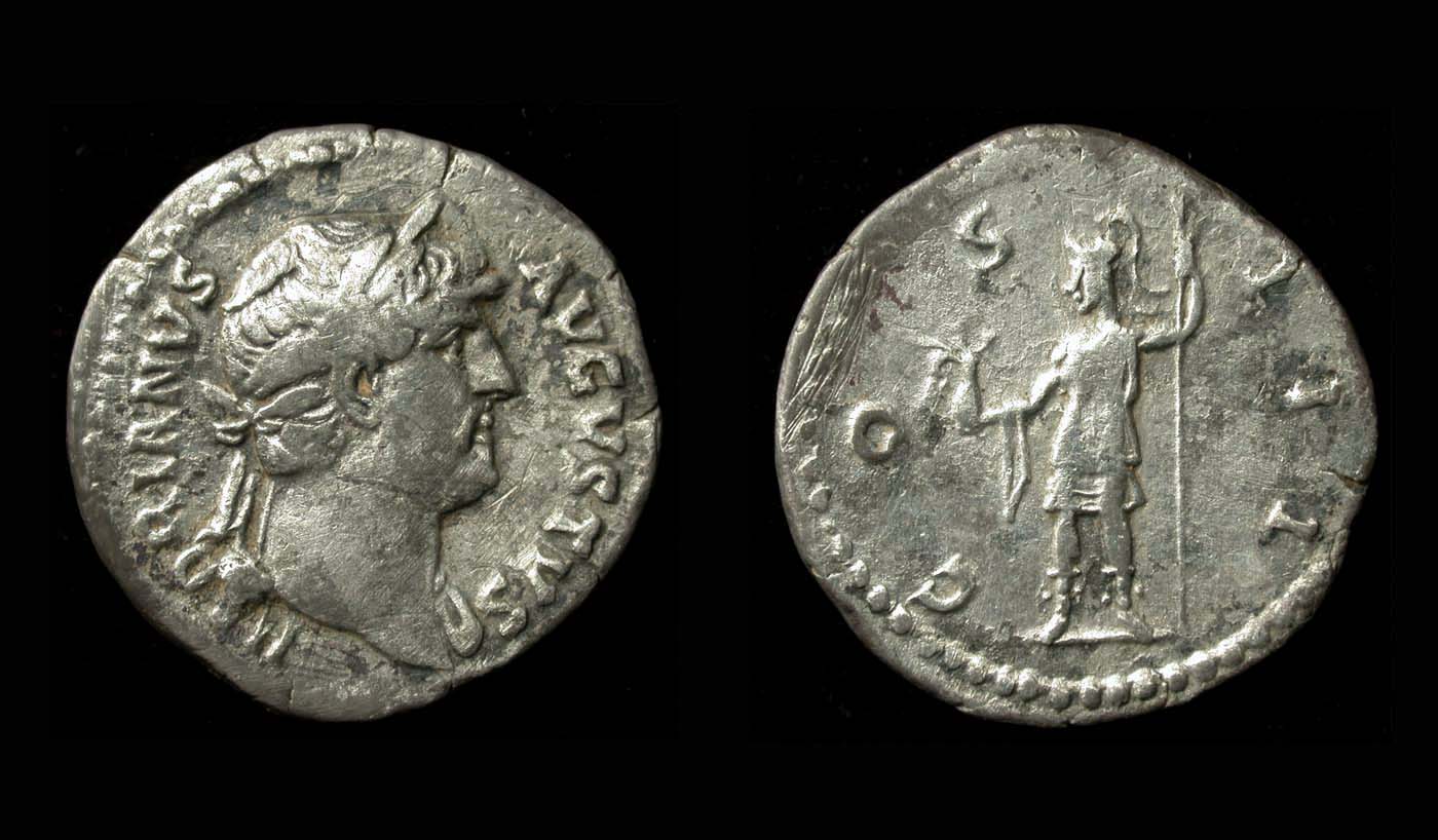 Silver; 19mm/2.6gm Rome mint, ca. 124-125 AD