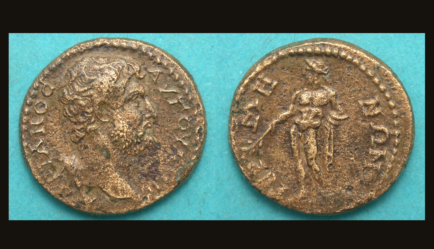 Obv/ ΑΔΡΙΑΝΟ ΑΥΓΟΥΤΟ; Bare head of Hadrian, right.