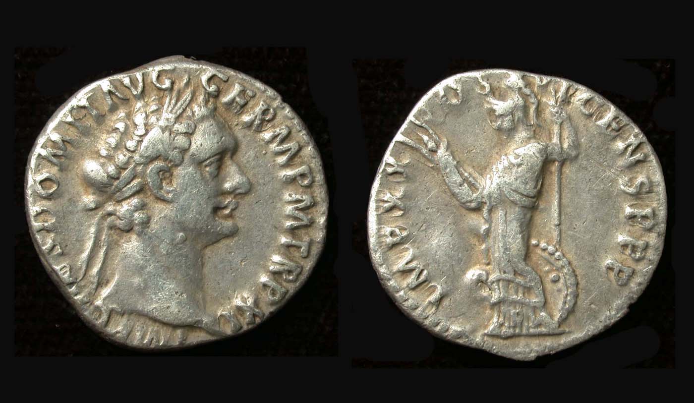 Domitian, Denarius, Minerva holding Spear & Thunderbolt reverse