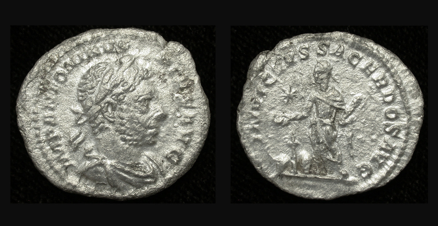 Elagabalus, Denarius, Sacrificing as Syrian Priest reverse