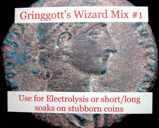 Mix 1 tablespoon (17gms) in 2 cups (500ML) of very hot de-mineralized water or distilled water. Remove from heat and add coins/artifacts and allow to cool. Once cool, add all to plastic bowl and cover. Let rest for 5-7 days, then scrub with a tooth brush under running water. Return to liquid as neeeded and repeat.